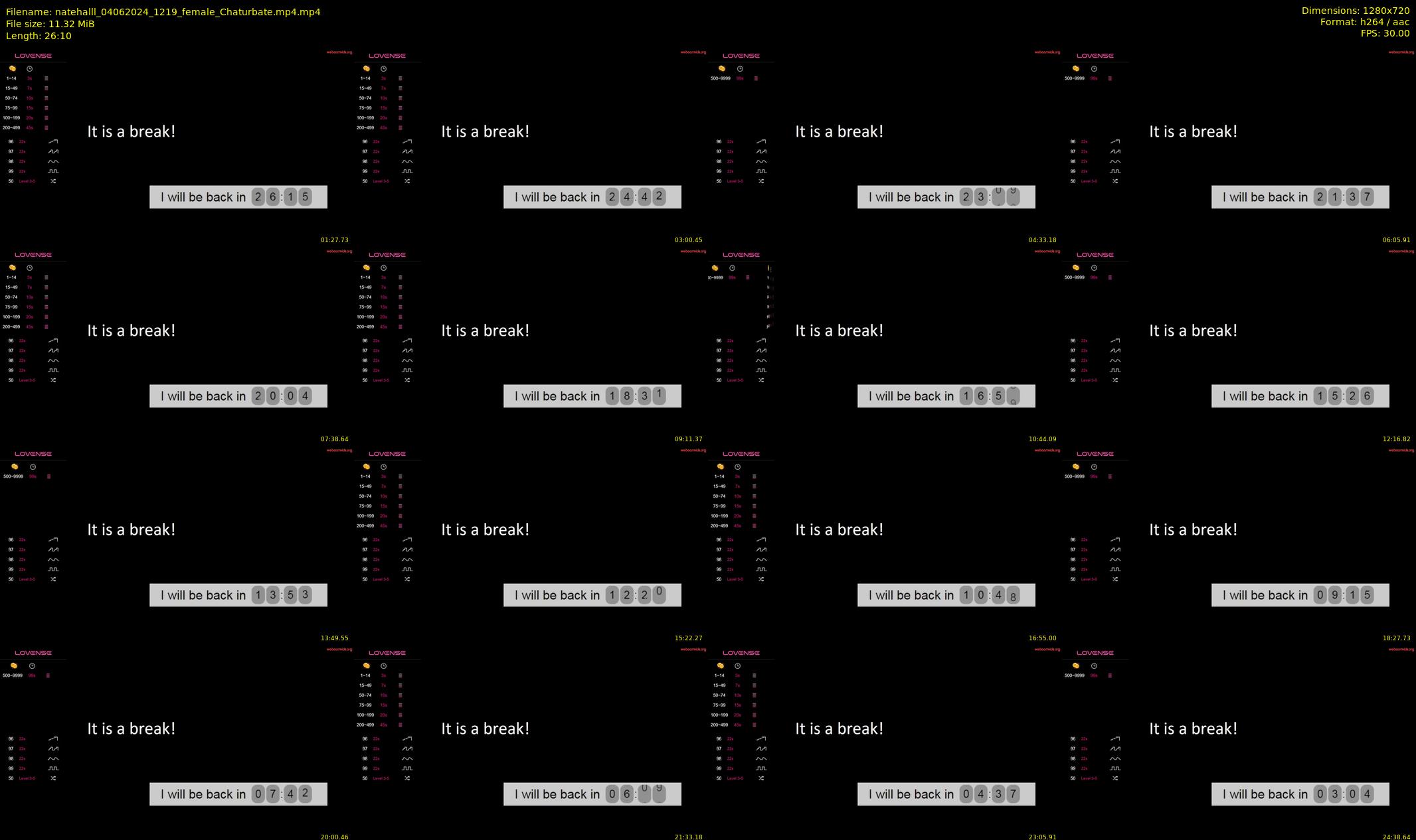 h264, yuv420p, 1280x720, 30 fps